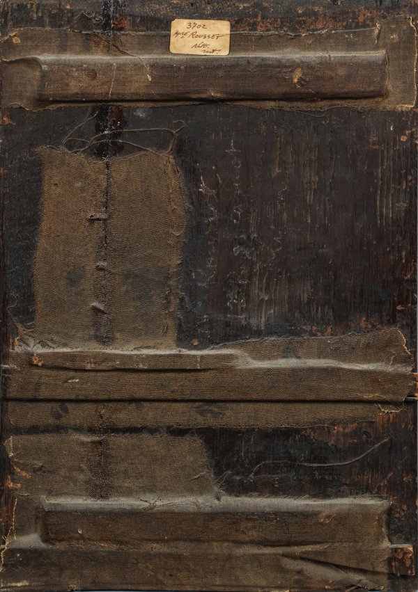 Oil on oak panel. Old label with no. and provenance "3702 Mme. Rousset" on the reverse.