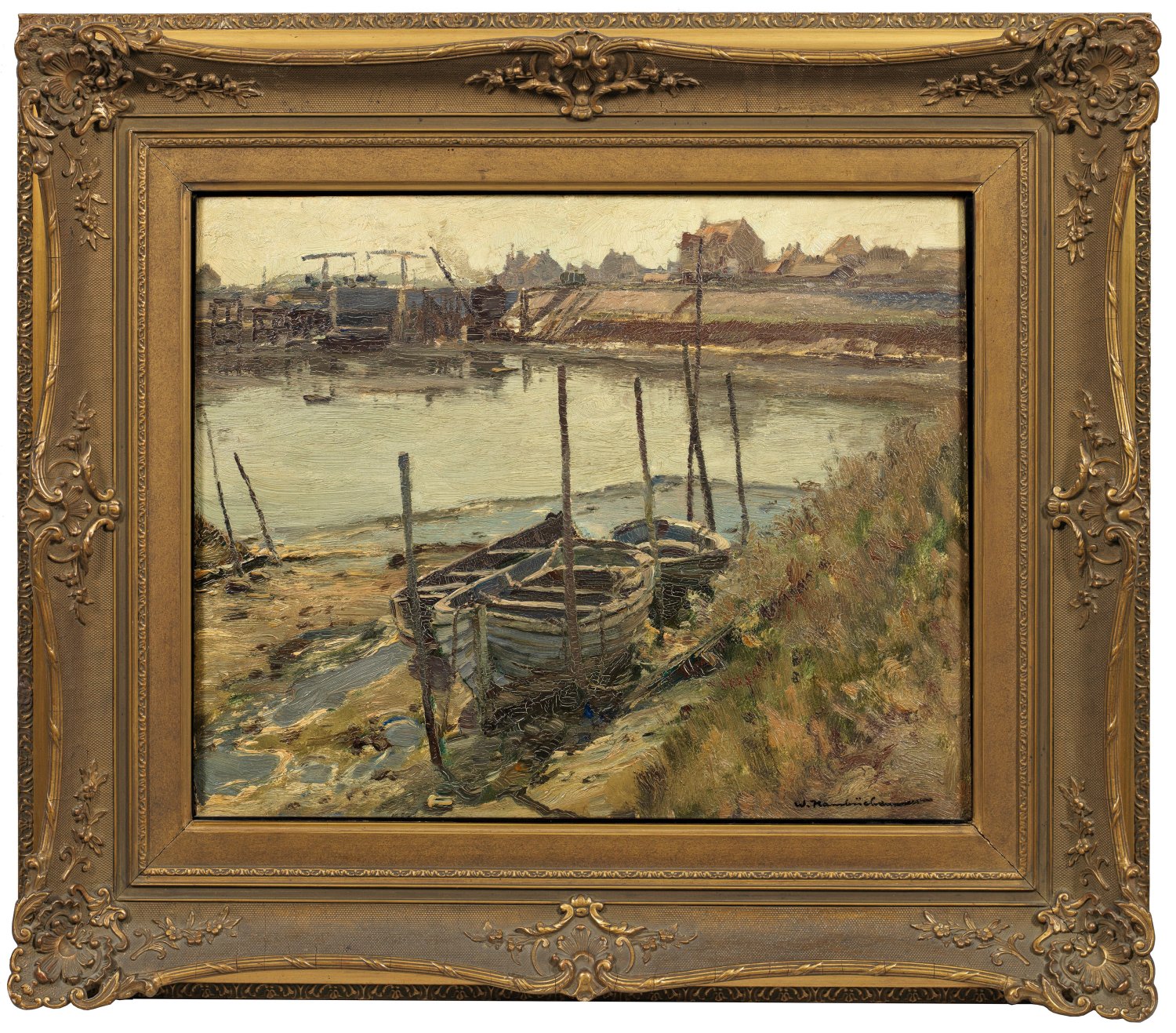 Impressionistisches Werk Hambüchens, der seit 1898 regelmäßig Studienreisen nach Belgien und Holland unternahm, insbesondere an deren Küsten. Öl/Sperrholztafel. R. u. sign.; 40,5 cm x 50,5 cm. Rahmen.