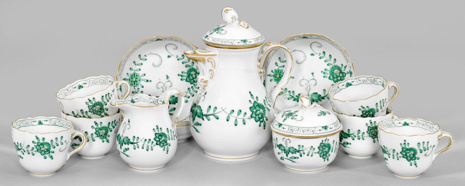 Lot 3067: Mokkaservice mit Dekor "Indisch-Grün"