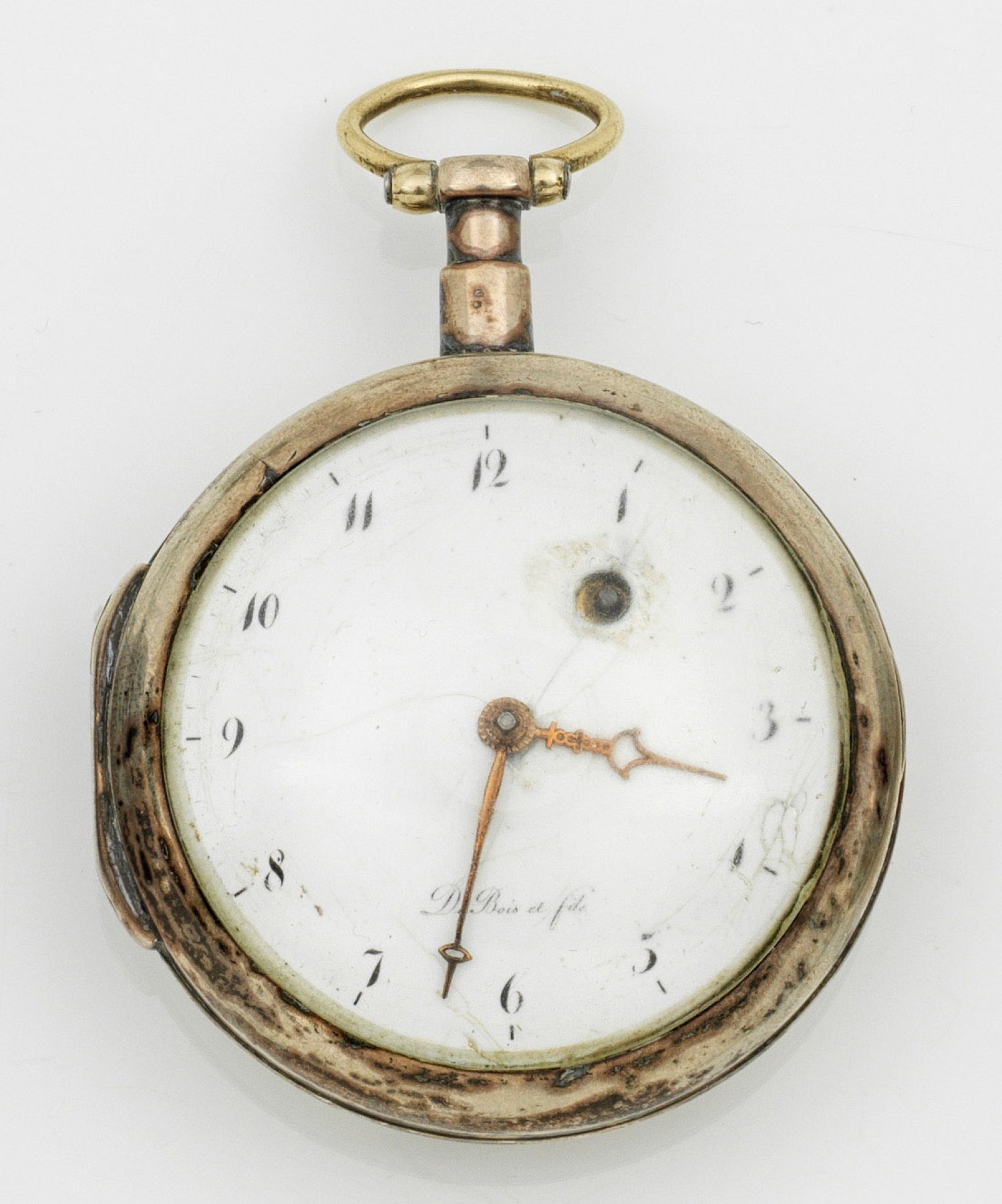 A verge watch by Du Bois & Fils, Swiss, end of 18th C.; Silver case. Gilt mechanical movement with chain and fusee. Platine and dial signed. Minor flaws and repairs.