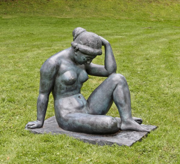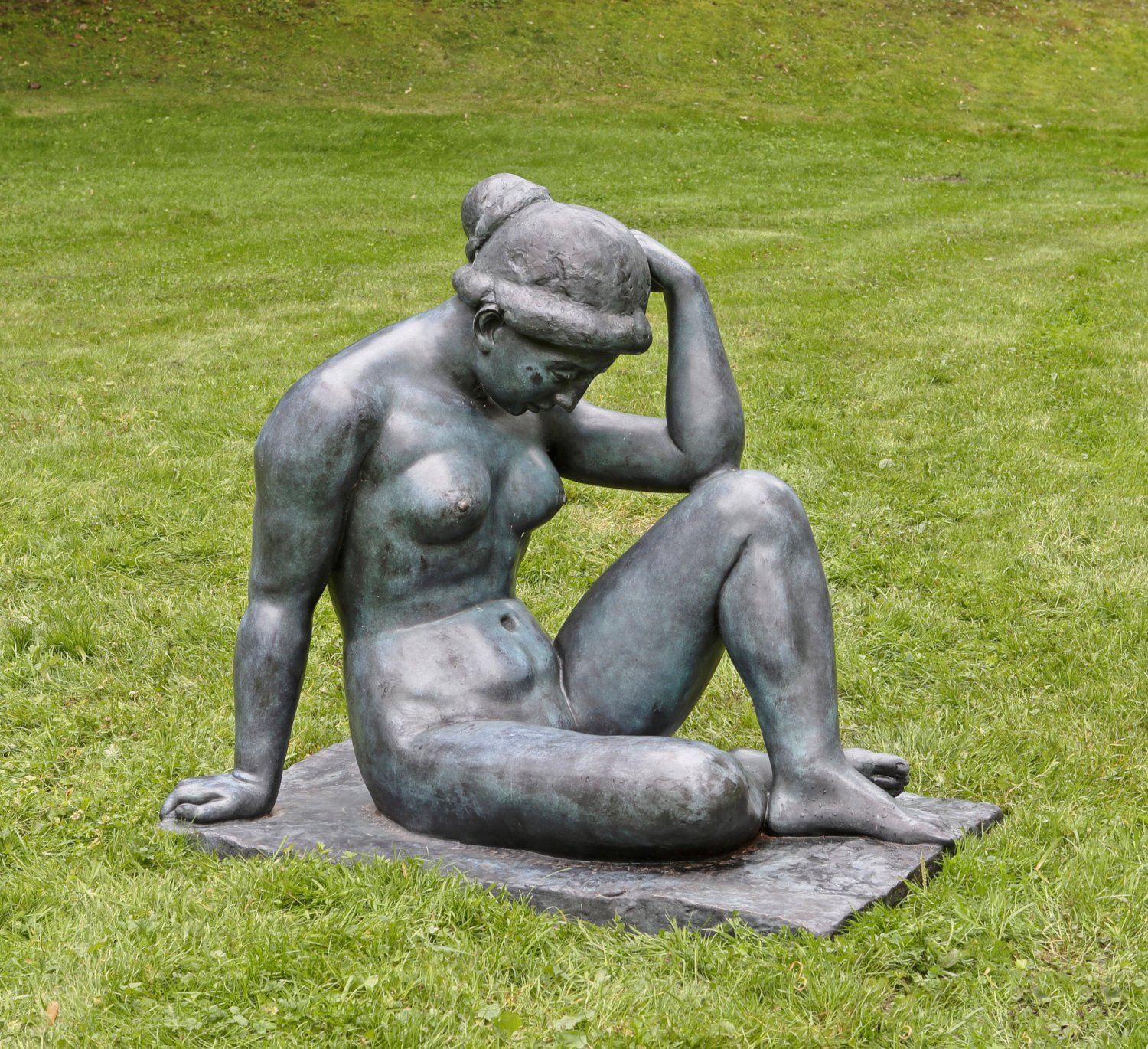 Bronze, dunkel patiniert. Monogr.; Posthumer, zeitgenössischer Guss (Ende 20./Anfang 21. Jh.) nach der berühmten Skulptur von 1905, welche durch ihre ausgewogene Komposition als die berühmteste und bedeutendste in Maillols Oeuvre gilt. Auf einer rechteckigen Plinthe sitzt, völlig in sich ruhend, ein weiblicher Akt mit aufgestütztem linken Bein und hierauf gelehntem Arm. 1904 lernte Maillol den Kunstsammler und Mäzen Harry Graf Kessler kennen, der ihn mit der lebensgroßen Aktskulptur beauftragte. 1905 wurde die fertiggestellte Gipsfassung mit großem Erfolg im Salon d’Automne in Paris (noch unter dem Titel "Femme") ausgestellt. Bis um 1907 vollendete er die Skulptur in Kalkstein (heute in der Sammlung Oskar Reinhart in Winterthur); 1923-1927 entstand überdies eine Marmor-Version (im Musee d'Orsay, Paris). Nach dem II. Weltkrieg wurden posthum erste große Bronzegüsse ausgeführt: u.a. im MoMA in New York, im Musee d'Orsay und im Jardin des Tuileries in Paris. Ein weiteres Bronze-Exemplar diente auch als plastischer Schmuck für Maillols eigenes Grabmal. Ca. 91 cm x 96 cm x 63 cm.