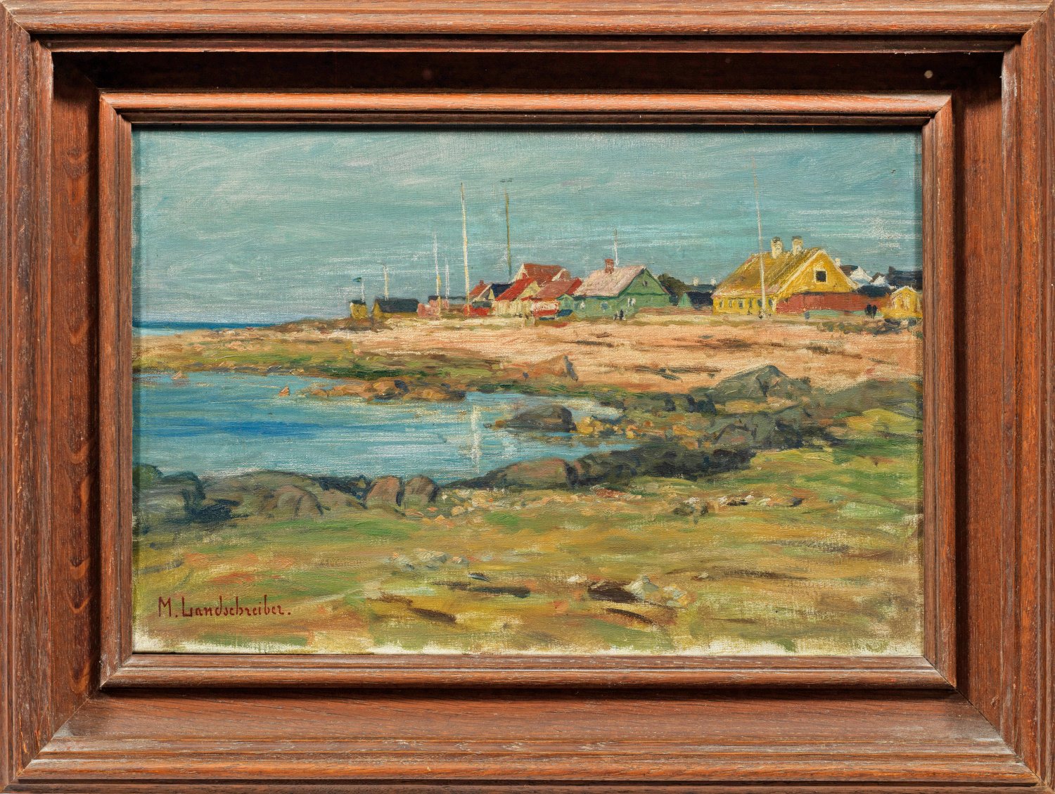 In sommerlicher Palette und impressionistischen, lockeren Duktus gemalte Impression des oberbayerischen Malers, der in München und Paris ausgebildet wurde und seine Motive in Bayern, Schweden und Tirol fand. Öl/Lwd.; L. u. sign.; 30,5 cm x 45,5 cm. Rahmen.