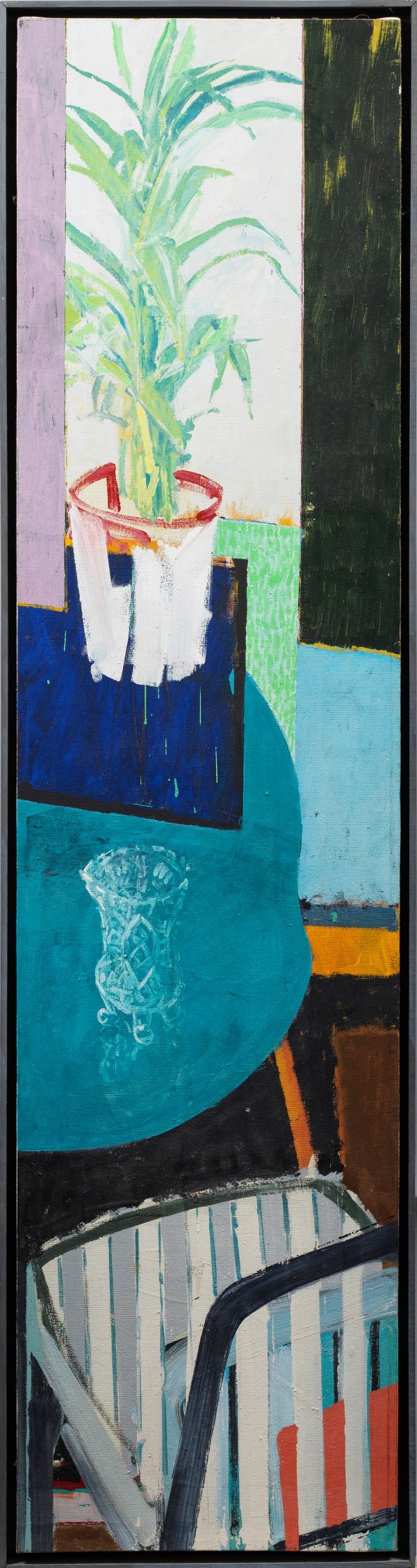 Expressives Stillleben Hegers, der 1984-1990 an der Akademie in Stuttgart studierte und 2006-2012 eine Professur an der Hochschule für Kunst und Design in Halle, Burg Giebichenstein hatte. Öl oder Acryl/Lwd.; Verso sign., betitelt u. dat. (20)01. 180 cm x 45,5 cm. Rahmen.