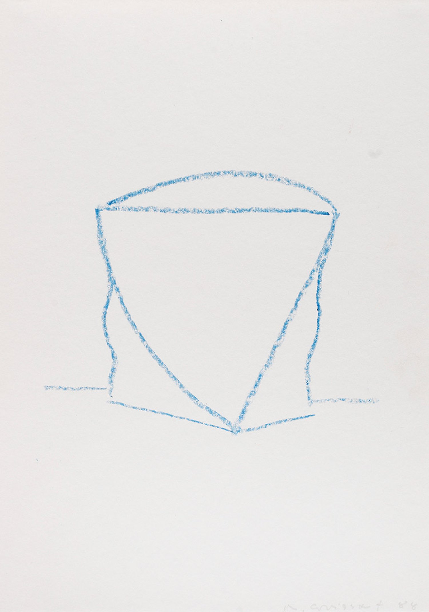 Pencil in blue on paper. Signed and dated (19)88.