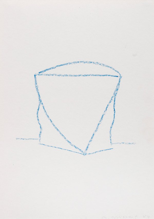 Formstudie in Blau. Nach einer Steinmetzlehre und dem Besuch der Schule des deutschen Handwerks in Kaiserslautern, studierte Michael Croissant in München, wo er sich zunächst freischaffend niederließ. Sein Stil ist geprägt von einer geometrisch abstrahierten Formensprache. Blauer Farbstift/Papier. R. u. sign. und dat. (19)88. 29,5 cm x 21 cm. Provenienz: Sammlung Dr. Michael Semff, München; Galerie Günther Franke, München.