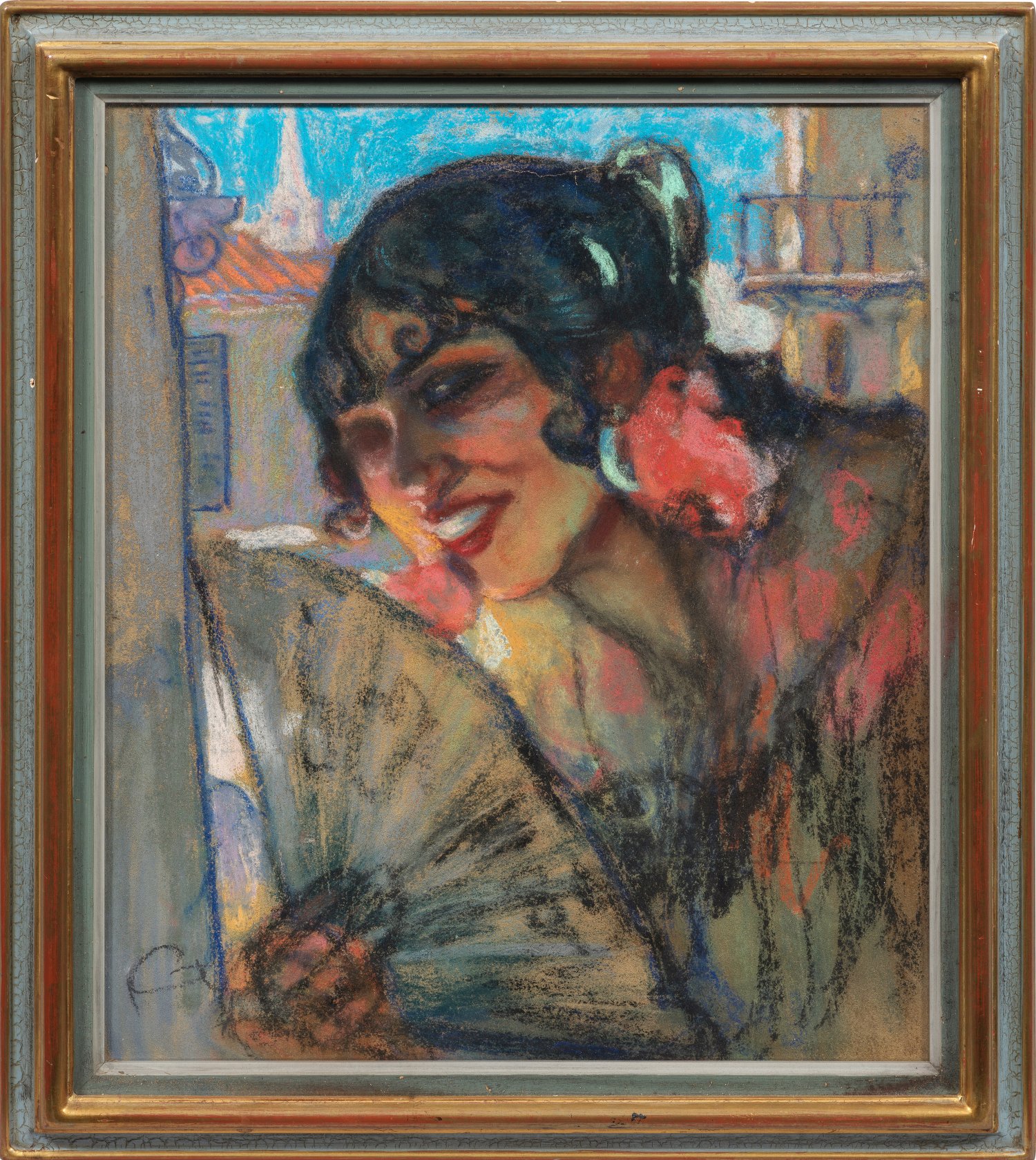 Expressive, von den Postimpressionisten und Fauvisten beeinflusste Darstellung. Louis Fortuney war das selbst gewählte Pseudonym von Louis Ernest Fortuné Andrieux. Er studierte an der École des Beaux-Arts in Toulouse, bevor er mit 20 Jahren nach Paris ging. Fortuney arbeitete hauptsächlich in Pastell, wobei weibliche Bildnisse sowie die Akteure in Opern, Theatern, Cafés, im Ballett und Varietés die bevorzugten Sujets waren. Pastell/Papier. L. u. monogr.; 45 cm x 36 cm. Rahmen.