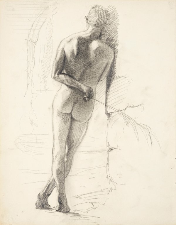 A collection of 11 sheets with nude males. Pencil, brown and black ink on paper. Each signed.