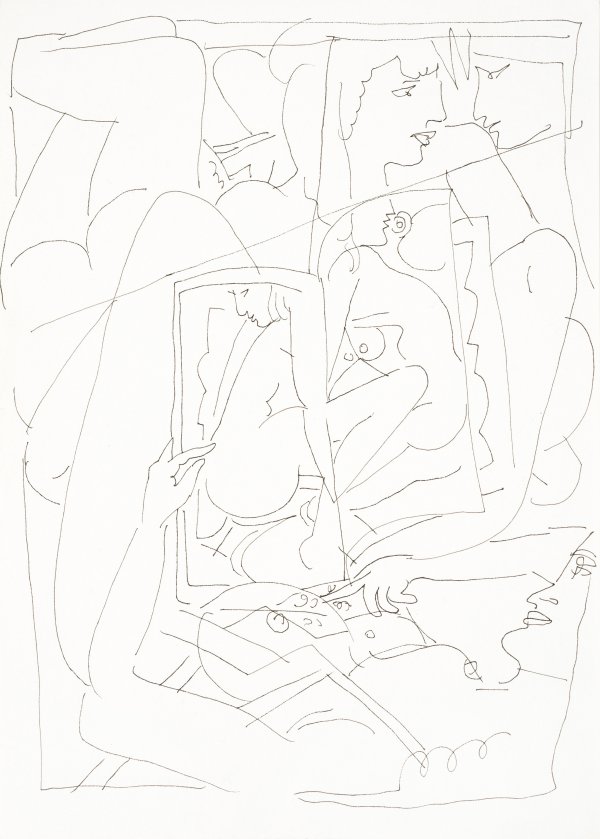 Erotische Zeichnungen. Feder/Papier. Ein Blatt sign. u. dat. 1965, zwei Blätter verso mit Nachlass-Stempel in Schwarz. Ca. 29,5 cm x 20,7 cm.