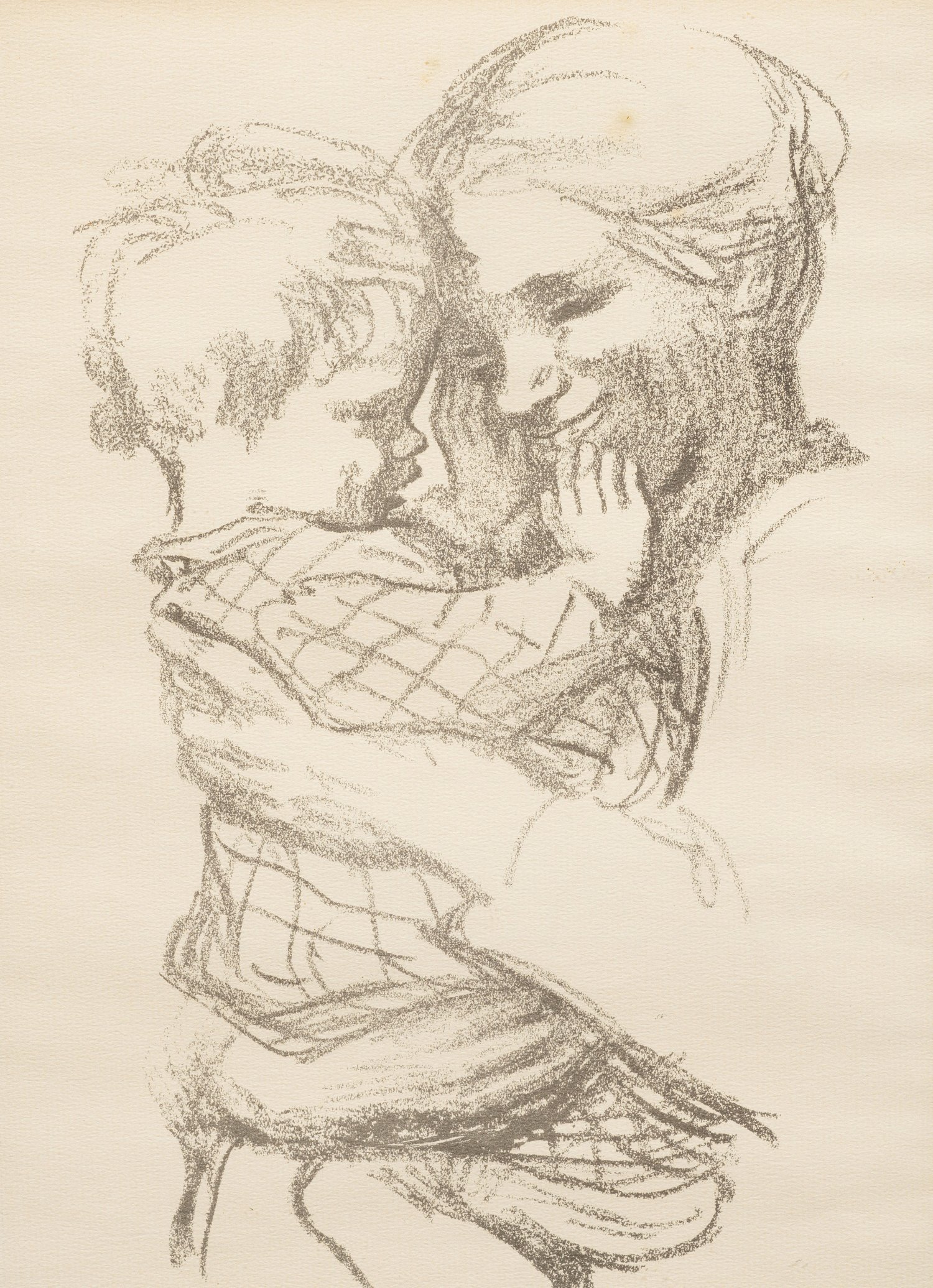Lithographie/Velin, 1916. Einer der bei Knesebeck erwähnten, unnummerierten Drucke, neben der kleinen Auflage von 20 nummerierten Exemplaren dieses frühen Zustandes, vor der lithographierten Signatur unten rechts und vor der Wegnahme der Füße. Wvz. Klipstein 132, Knesebeck 136. Darstellung ca. 33,4 cm x 18,9 cm. Blatt 39,4 cm x 28 cm. Rahmen.