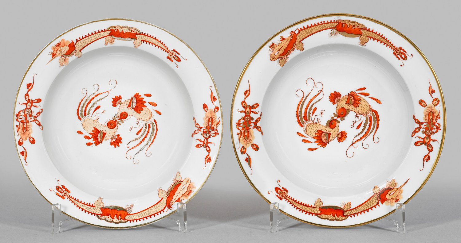 Lot 2178: Zwei Zierteller mit Dekor "Roter Drache"