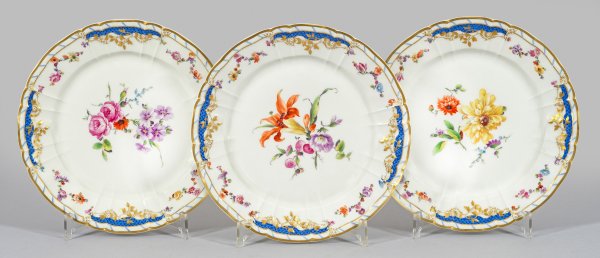 Three porcelain plates "Breslauer Stadtschloss". Sceptre and painter's mark.