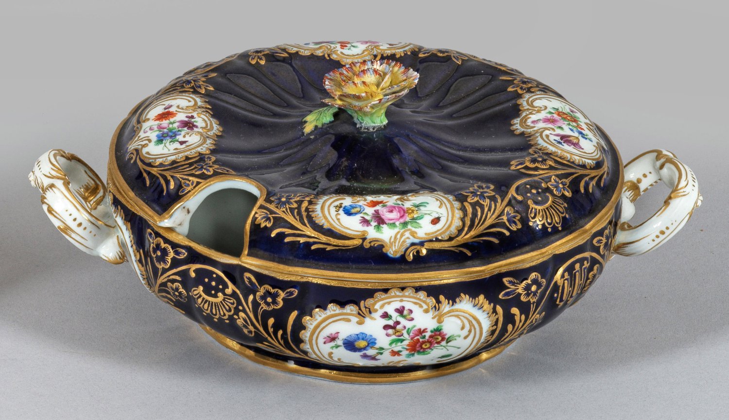 Lot 2412: Wöchnerinnen-Deckelterrine mit kobaltblauem Fond