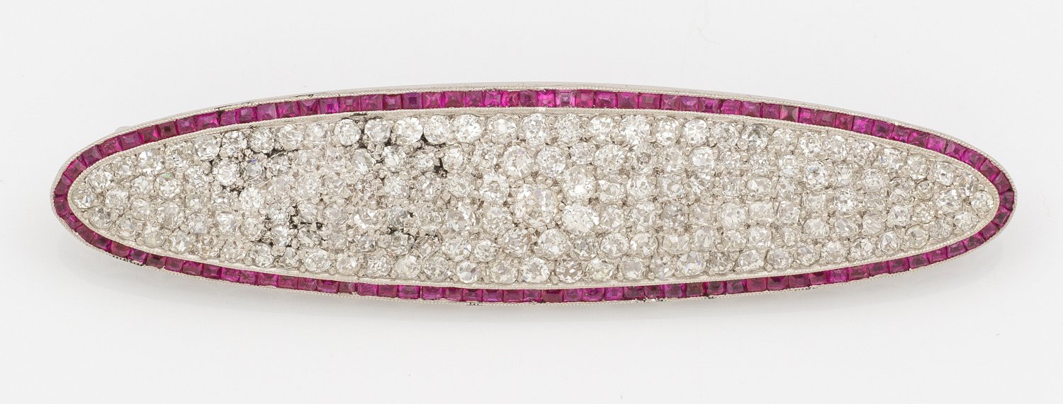 Lot 2516: Feine Art Déco-Diamant-Rubin-Brosche