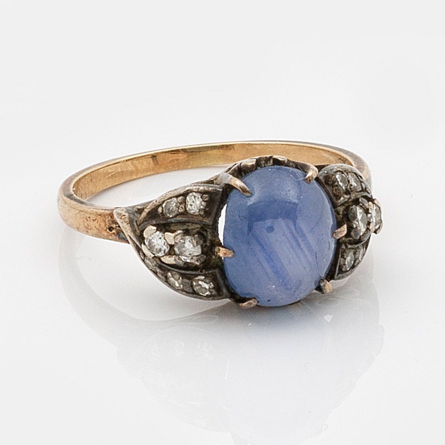 Ring set with a star sapphire and diamonds, in 14 k gold.