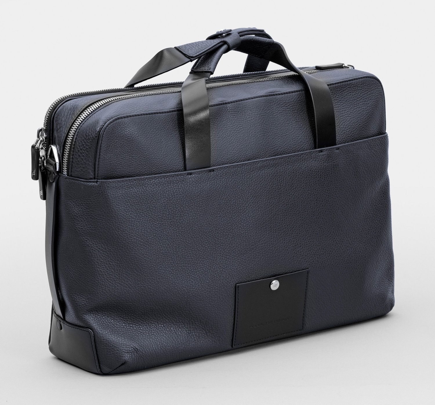 A night blue leather briefcase by Porsche Design. New condition. Original dust bag. Manufacturer's mark.