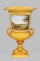 Derartige Kratervasen zeichnen sich durch das Herrscher-Portrait häufig als königliche Geschenkgaben aus. Von großer Seltenheit auf Berliner Porzellan zeugt die Malers-Signatur von Johann E. A. Forst (1783 - 1866), dem herausragenden Vedutenmaler und Vorsteher dieses Gebiets der KPM zu Anbeginn des 19. Jhs.; Der aus einer generationenübergreifenden Malerfamilie bei der KPM stammende Forst begann 1797 seine Ausbildung in der Manufaktur und bemalte um 1823 bis 1832 nachweisliche Veduten von höchster Güte. Eine ebenfalls von Forst sign. Vase mit Adlerhenkel und gleichartiger Berlin-Ansicht gehörte zu der ehem. Twinight-Collection. Für eine heute im Besitz des Metropolitan-Museums in New York befindliche und von Forst bemalte Vase mit der Ansicht Potsdam wird angenommen, dass Prinz Carl von Preußen diese Vase in Auftrag im Kontext der Entstehung von Schloss Glienicke gab. (MET, Inv.Nr. 2020.254.4).
