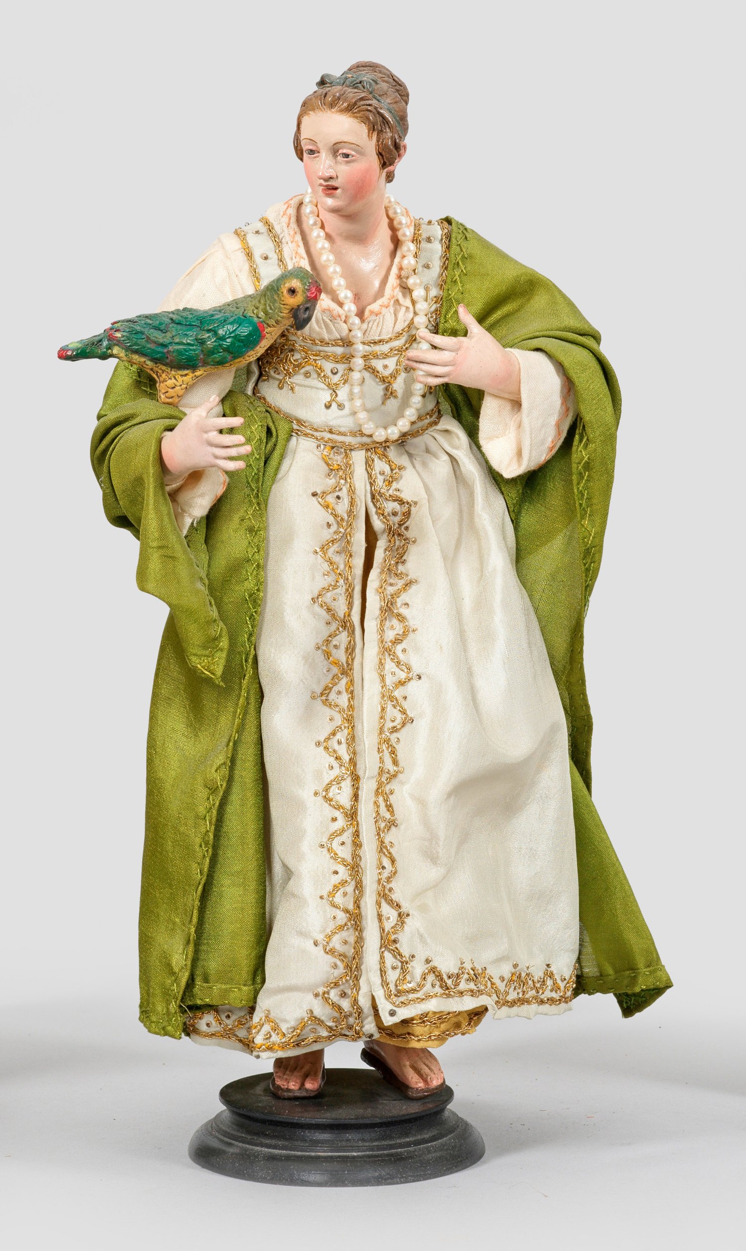 Lot 660: Adelige mit Papagei aus einer neapolitanischen Krippe
