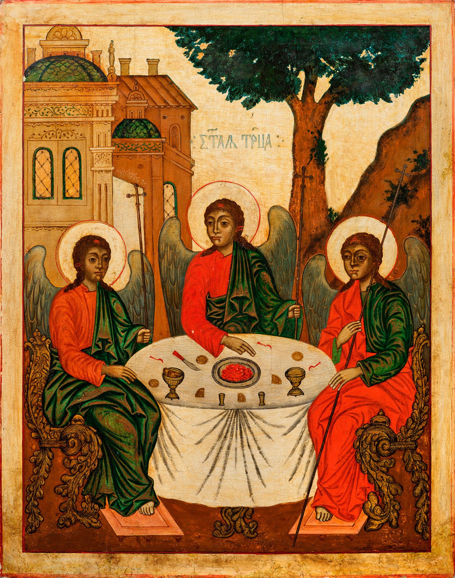 A Russian icon of the old testament trinity (or the hospitality of Abraham). Tempera on wood.