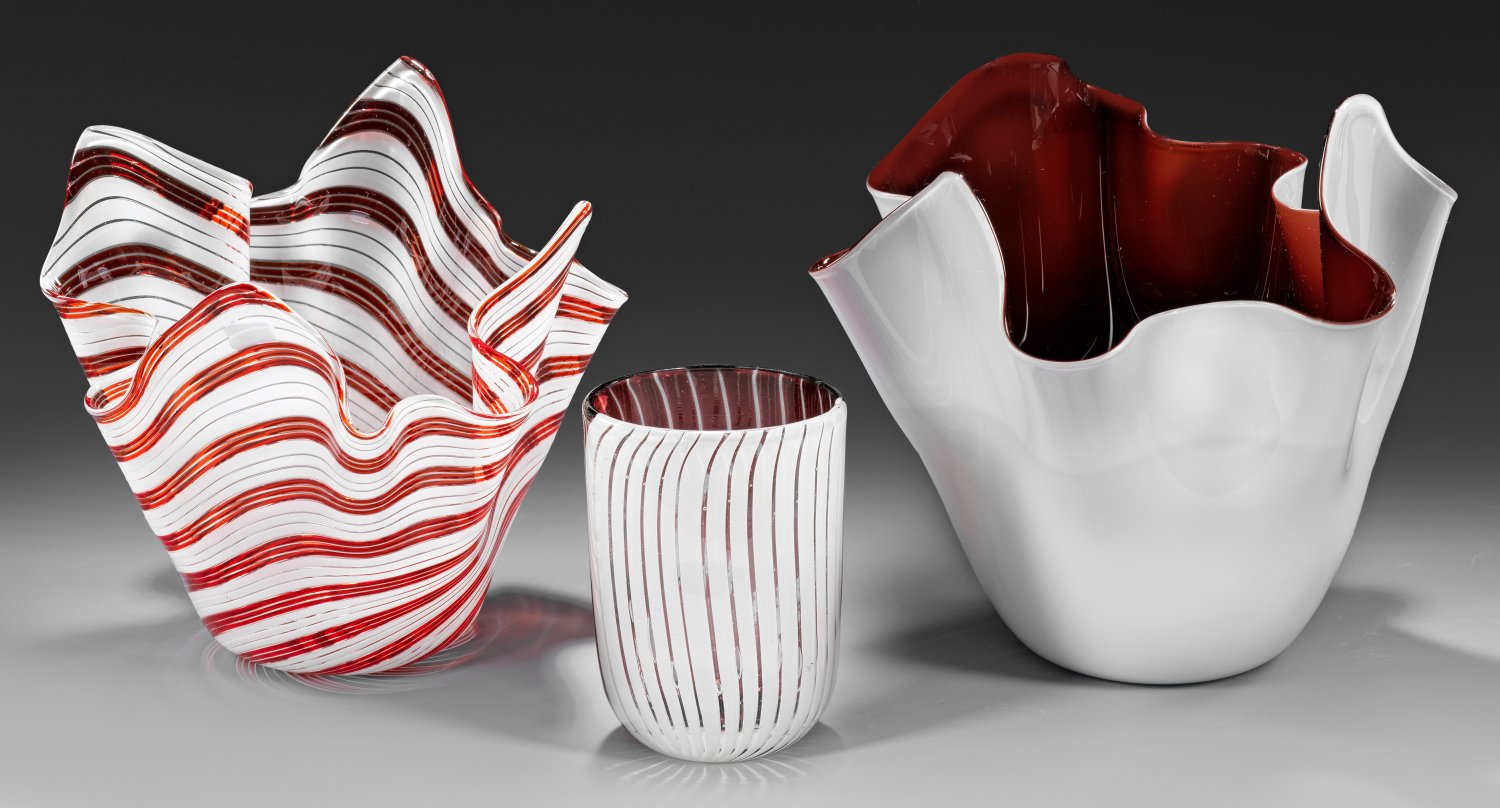Lot 89: Zwei "Fazzoletto"-Vasen mit Ziervase