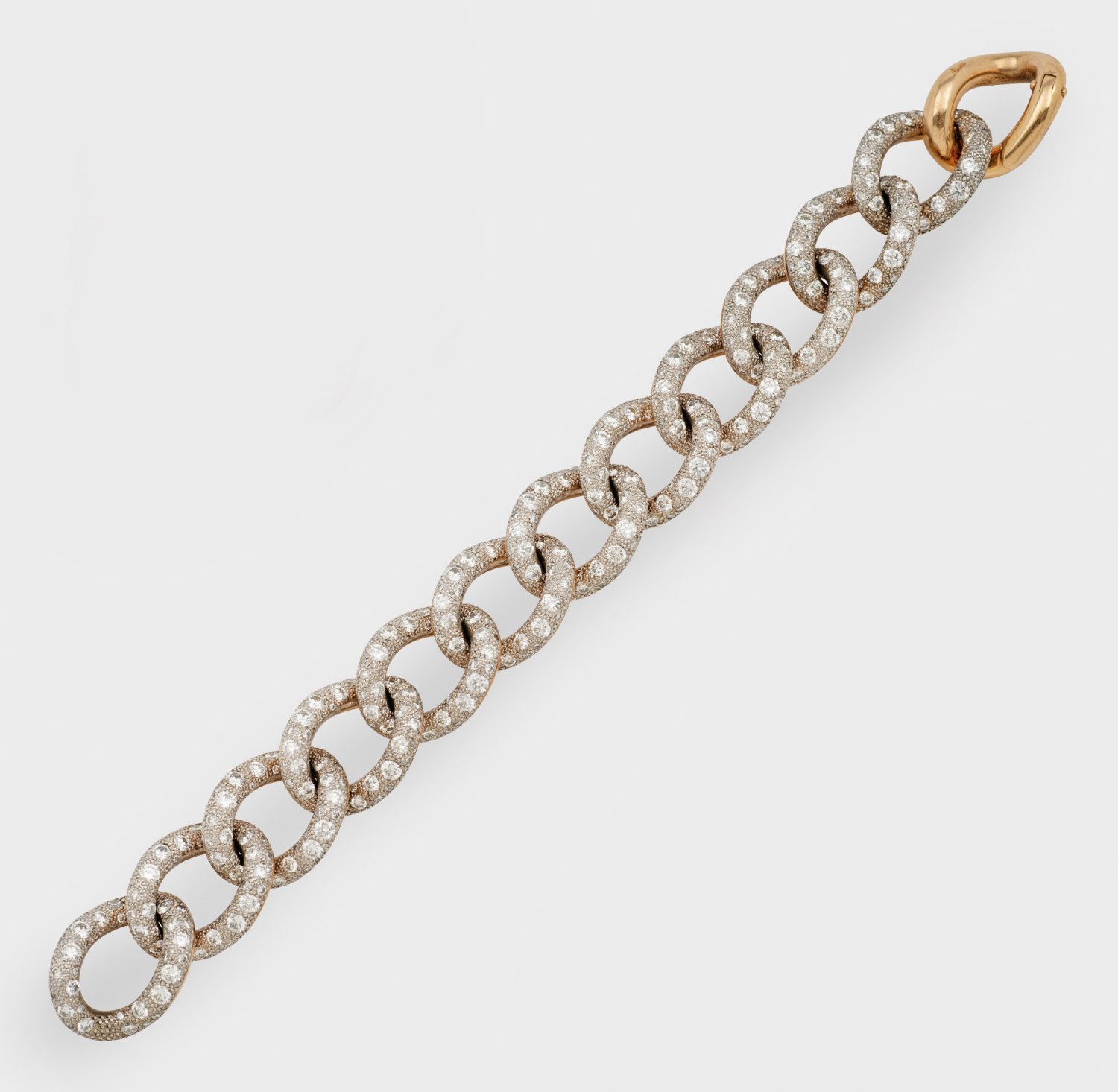 Bracelet by Pomellato set with diamonds approx. 16,10 ct. (E/F/vvs), in 18 k red gold and silver. Maker's mark.
