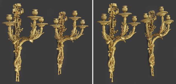 Lot 1530: Seltene Serie von vier großen Louis XVI-Wandgirandolen