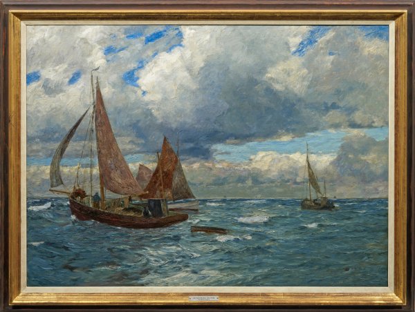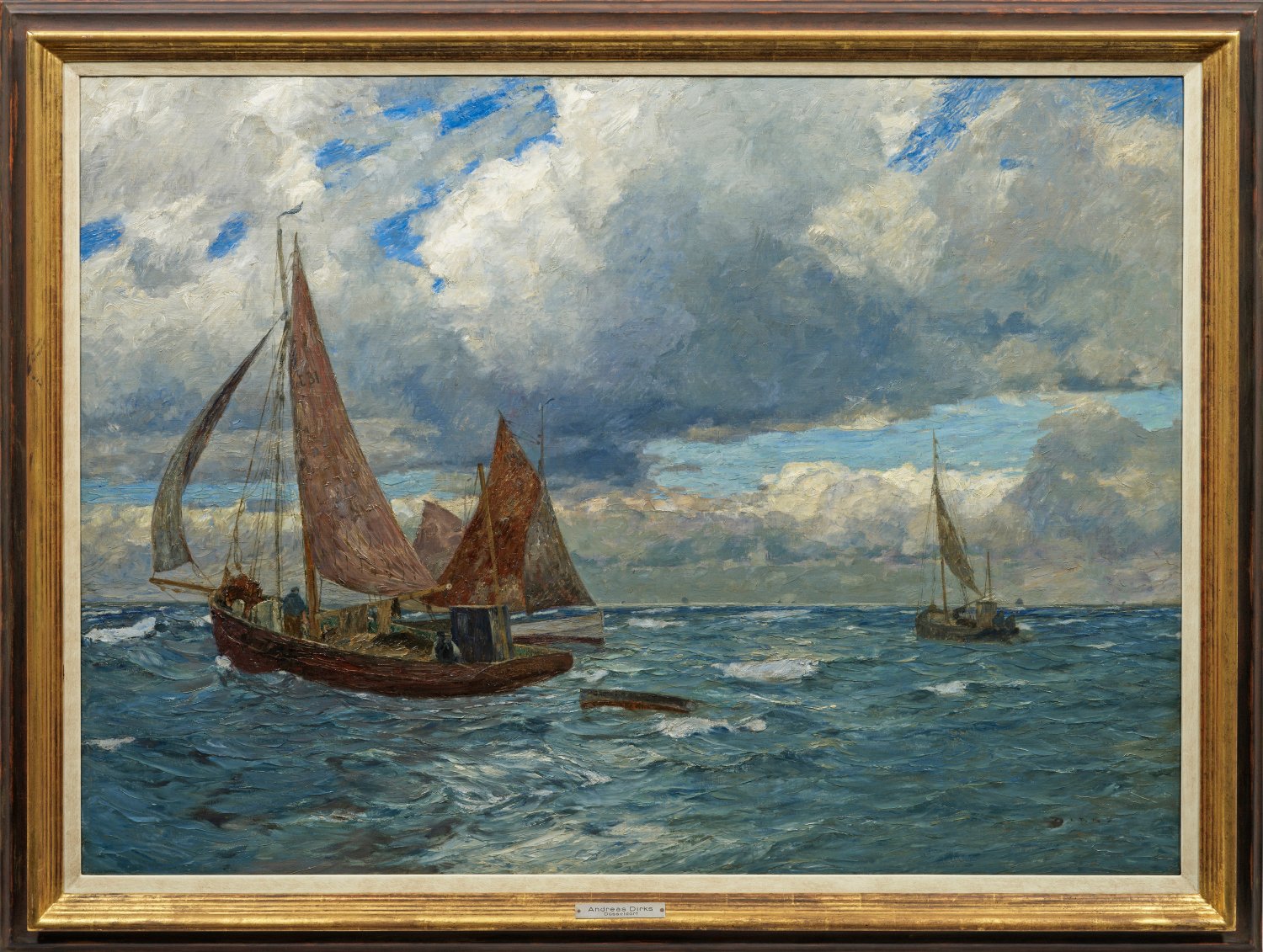 In leuchtenden Farben angelegtes, impressionistisches Seestück, um 1895 entstanden. Dirks zählt neben seinem Lehrer Eugen Dücker und A. Achenbach zu den bedeutendsten Marinemalern der Düsseldorfer Malerschule. Öl/Lwd.; R. u. sign.; 95 cm x 126 cm. Rahmen.