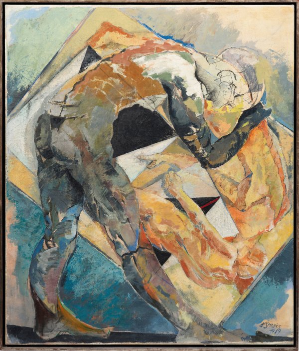 Smodics begann 1960 eine Ausbildung zum Formstecher und Designer für Druckmodelle und arbeitete als Textilzeichner. 1964 schloss er sich mit Helmut Fetz, Rudolf Zündel und Siegfried Kresser zur Künstlergruppe "Bregenzer Kreis" zusammen. Öl/Lwd.; R. u. sign. u. dat. 1989. 120 cm x 100 cm. Rahmen.