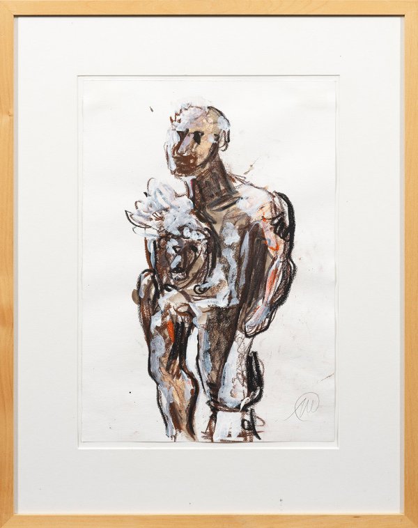 Mixed media with oil and grease chalk in colours on paper. Monogrammed. Gallery label on the reverse.