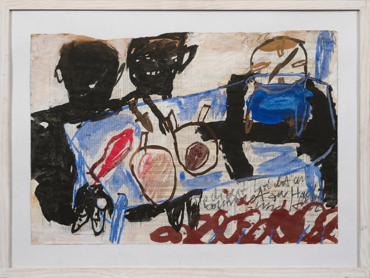Mixed media on newspaper. Monogrammed and dated (19)88.