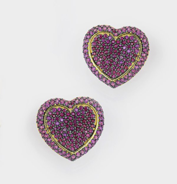 Lot 894: Paar dekorative Herz-Ohrringe