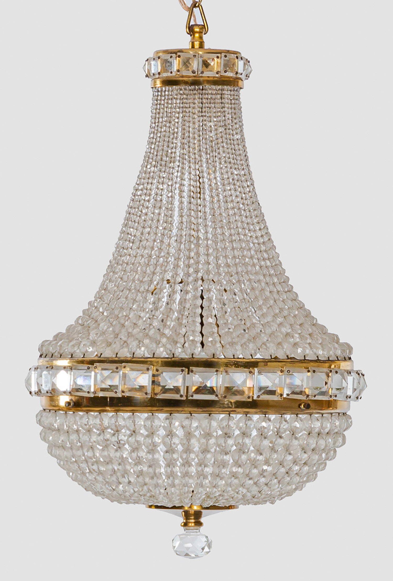 A French brass and glass chandelier.
