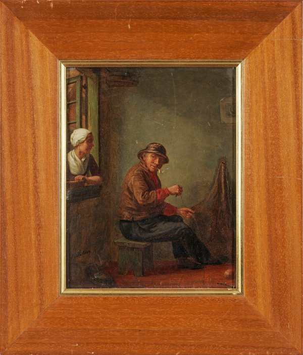 In altmeisterlicher Feinmalerei und dunkeltoniger Palette im Stil der alten Niederländer des Goldenen Zeitalters gemaltes Kabinettbild. Der in Rotterdam und ab 1897 in Leiden tätige Genremaler Johannes Helder stellte zu Lebzeiten regelmäßig in Amsterdam, Den Haag und Rotterdam aus. Seine anekdotischen Genreszenen in der Tradition eines David Teniers und Gerard Dou sind bis heute populär. Öl/Holz. L. u. sign.; Ca. 26 cm x 20 cm. Rahmen.