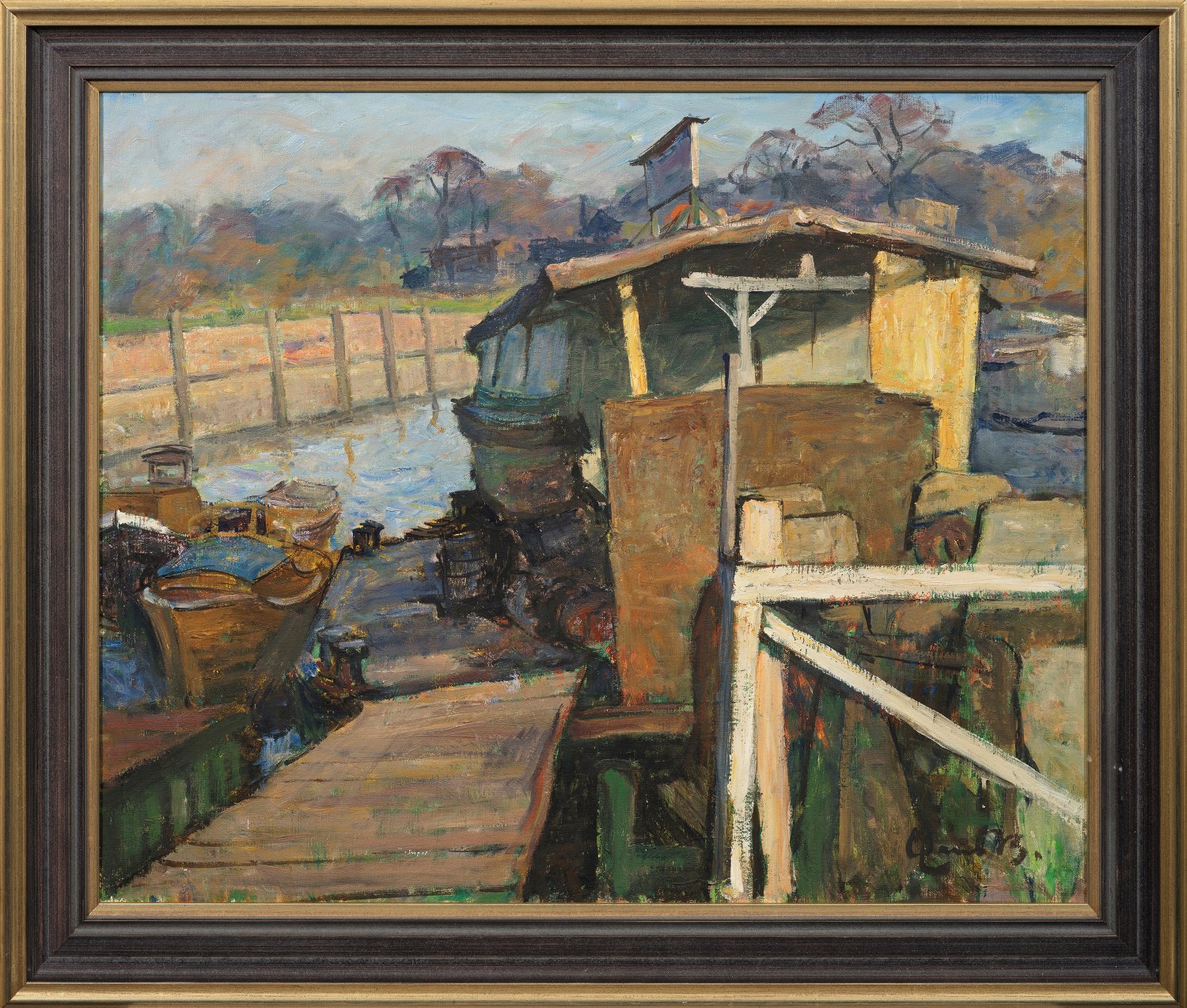 Herbstlich gestimmte, reizvolle Impression Beckers, der in Altona, Dresden und München ausgebildet wurde und ab 1945 dauerhaft in Hamburg ansässig war. Öl/Lwd.; R. u. sign. Claus B. 66 cm x 82 cm. Rahmen.