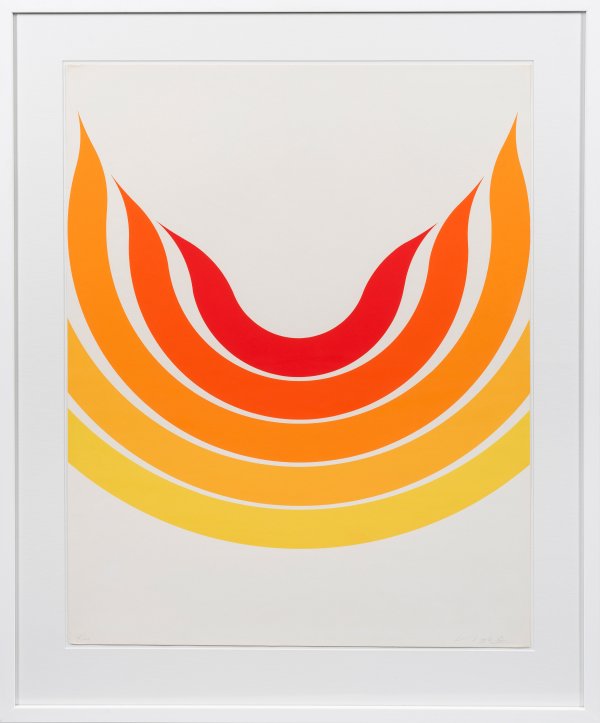 Farbserigrafie/leichter Karton. Sign., dat. (19)67 und nummeriert 4/60. Eine von 11 Arbeiten aus der Mappe "Augenblick und Dauer I", Edition Rottluff, Karlsruhe. Blatt 75,1 cm x 60,1 cm. Rahmen.