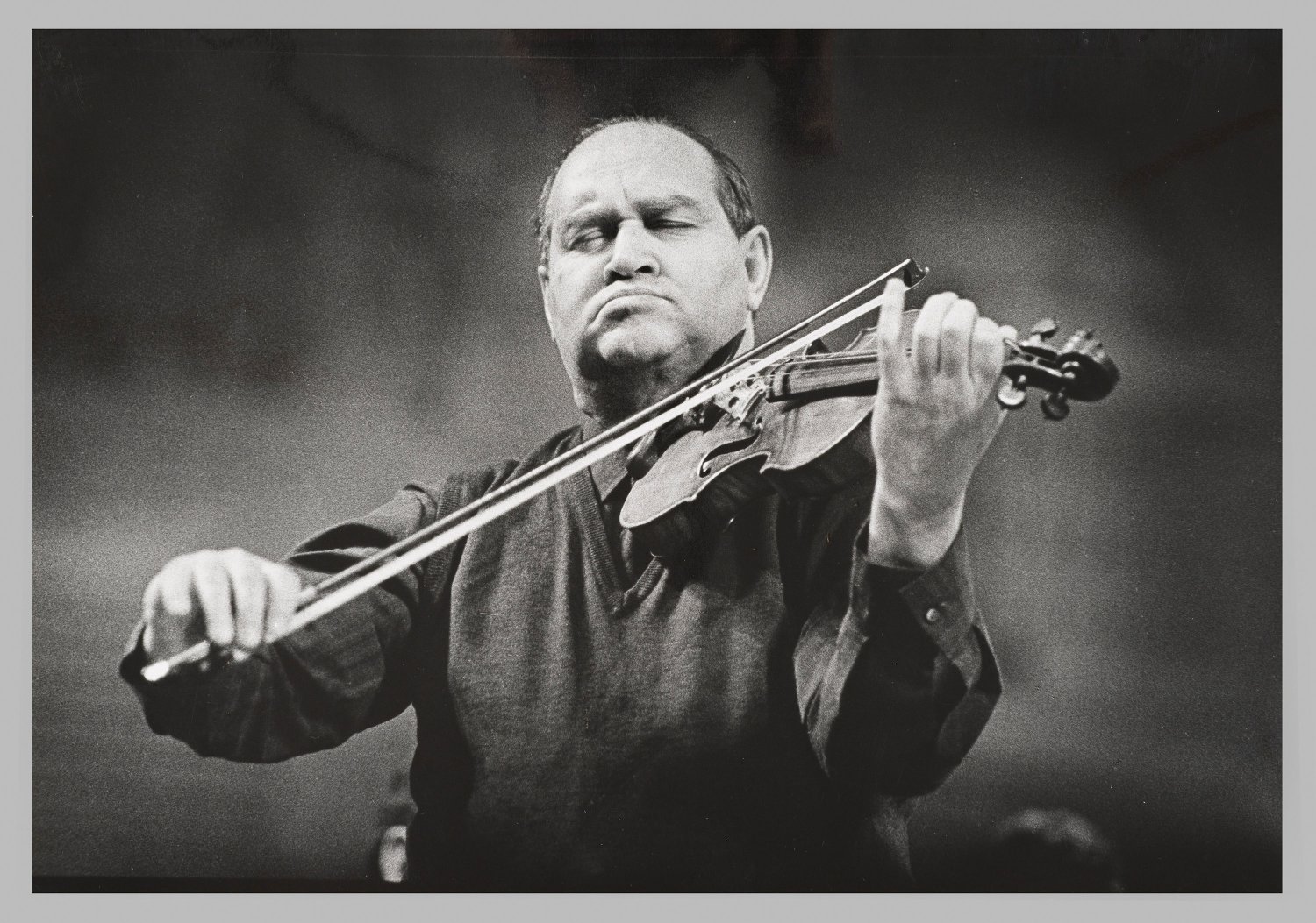 Wohl 1969. Silbergelatine-Abzug auf Baryt-Papier. Rücks. Copyright-Stempel Evelyn Richter VDJ/C. Wilhelmi Stuttgart, von fremder Hand beziffert: 44/5 (Seitenangabe für die Platzierung innerhalb der Monografie „David Oistrach - ein Arbeitsporträt, Berlin, 1973). Ikonisches Porträt des sowjetischen Violinisten und Dirigenten David Oistrach (1908-1974), das für das umfangreiche Fotobuch zu Oistrachs Schaffen während einer Orchesterprobe wohl 1969 in Dresden entstand. Fotografie ca. 20,8 cm x 29,8 cm. Minim. Alters- und Gebrauchsspuren, minim. Randläsuren.