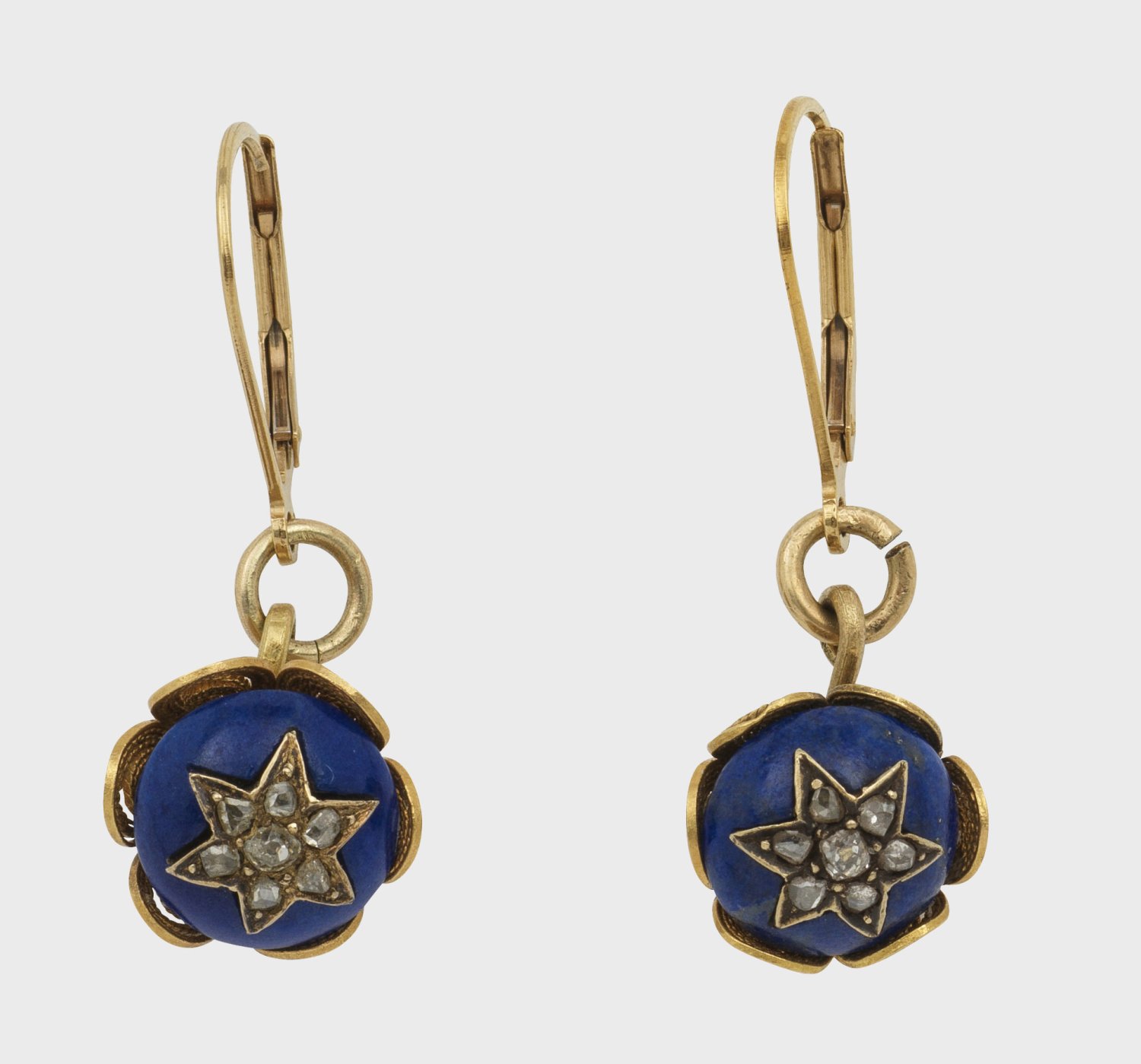 Lot 2652: Paar Spätbiedermeier Lapislazuli-Diamant-Ohrringe