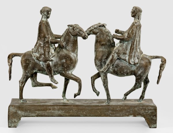 Bronze, braun patiniert, um 1978. Sign.; In moderner Weise stilisierte Darstellung der beiden aufeinander zureitenden Persönlichkeiten. Der 1942-1944 an der Akademie in München ausgebildete Bildhauer war 1946/47 Assistent von Edwin Scharff an der Landeskunstschule Hamburg und arbeitete seit 1950 insbesondere an Werken mit biblisch-christlichen Motiven für Sakralbauten. Diese Kleinplastik entstand im Zusammenhang mit einem nicht realisierten Entwurf Bückers für den Marktbrunnen in Paderborn. 26,5 cm x 35 cm x 8,5 cm.