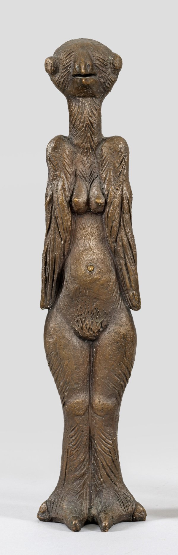 Bronze, braun patiniert. Günther Grass, Vertreter der deutschen Nachkriegsliteratur, machte ab 1947 eine Steinmetzlehre in Düsseldorf und studierte 1948-1952 an der Düsseldorfer Kunstakademie. Monogrammiert, nummeriert 23/100. H. 45 cm