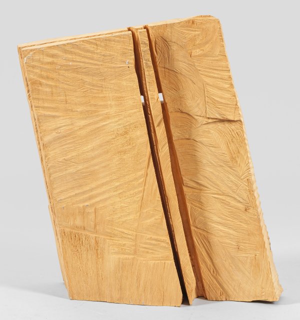 Kastanienholz. Annähernd rechteckige Skulptur, die die namensgebende "Schichtung" in mehrere Ebenen aufweist, die für die Werke Göhringers typisch ist. Sign. und dat. "A. Göhringer '98". H. 42 cm. 34 cm x 10 cm. Dazu ein Buch zum Künstler.