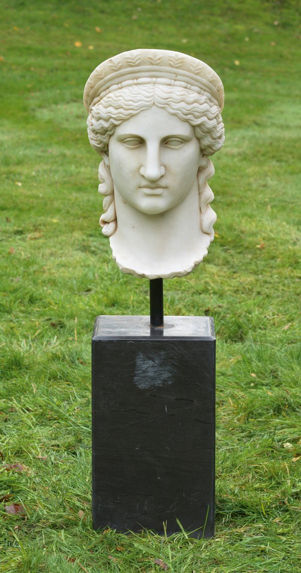 Contemporary sculptor, active 20th/21st century. Marble bust of Juno Ludovisi on dark stone base.