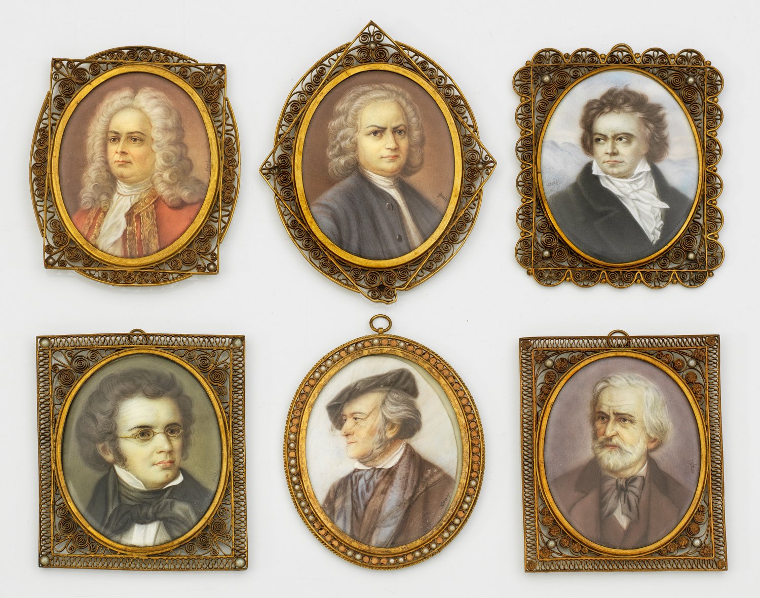 Außergewöhnliche Sammlung von 18 Porträtminiaturen bedeutender Komponisten