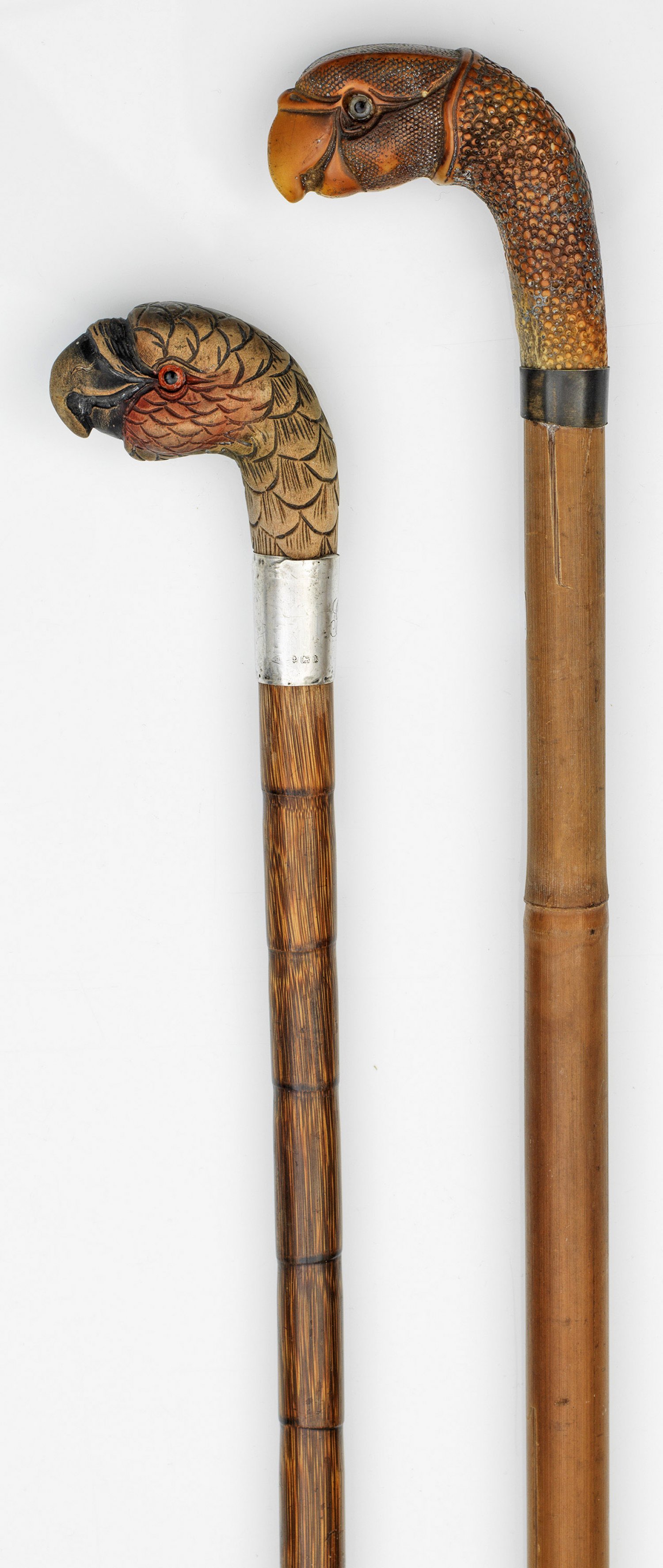 Lot 2168: Zwei Spazierstöcke mit Papageienköpfen