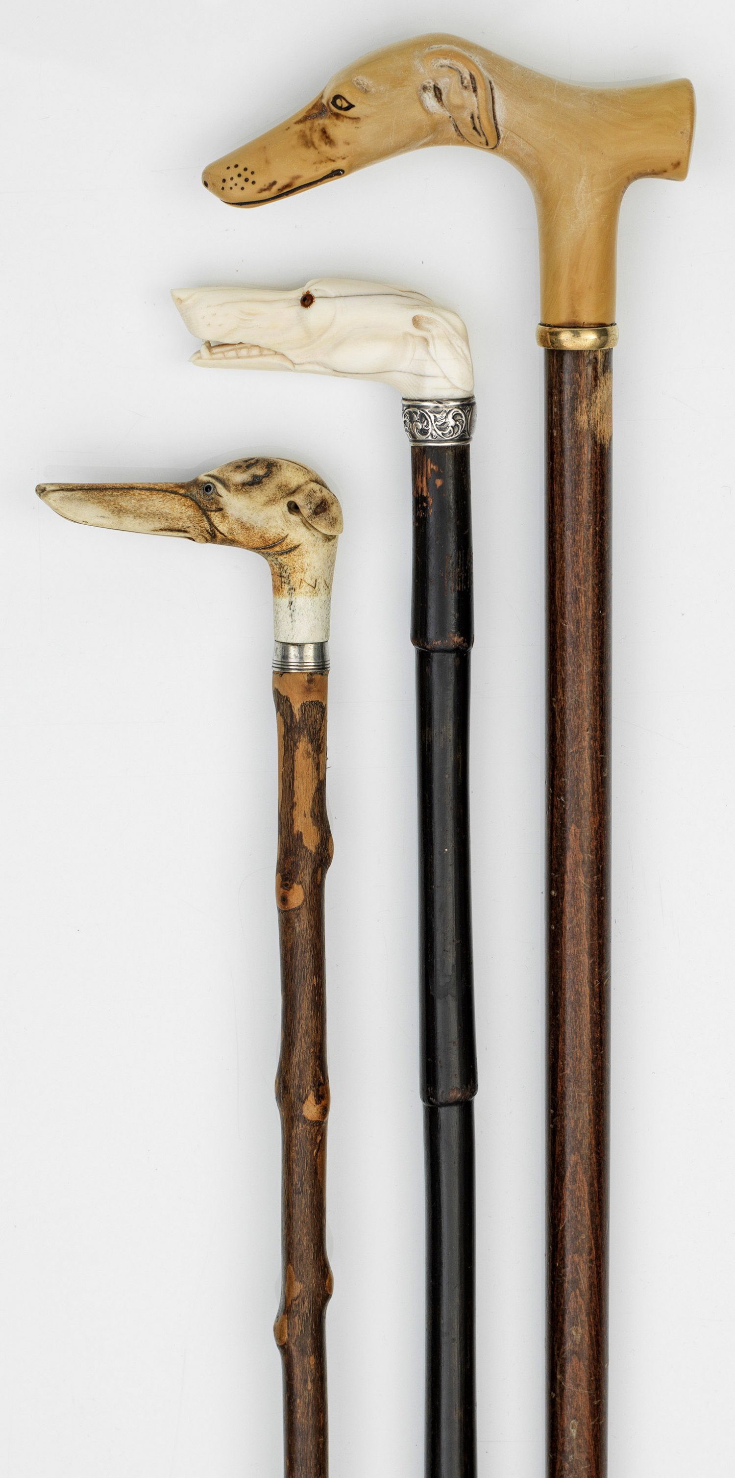 Lot 2169: Drei Spazierstöcke mit Windhundköpfen