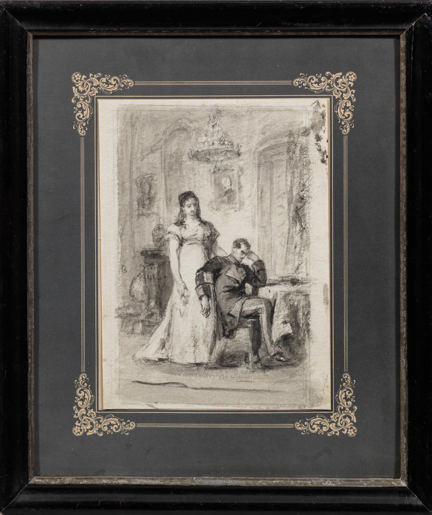 Sinnierender König Friedrich III. und Königin Luise von Preußen in einem Schlossinterieur