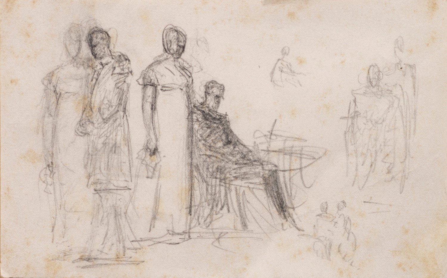 Ink and grey wash on paper. Estate stamp on the backing board.