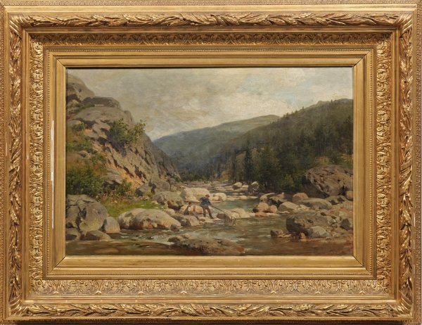 Stimmungsvolle Impression Naberts, der sich hauptsächlich Motiven aus dem Harz widmete. Öl/Lwd., R. u. sign.; Verso Rest eines Ausstellungsetiketts mit Betitelung. 45 cm x 68 cm. Rahmen.