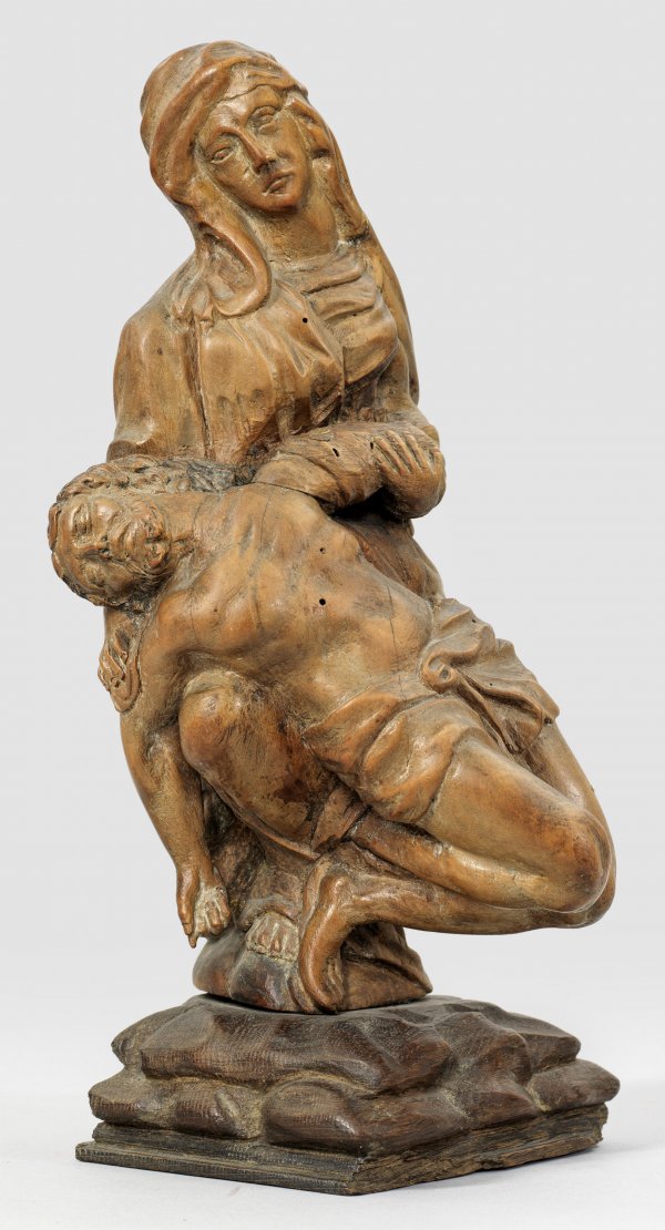 Lindenholz, geschnitzt. Besch.; Eichenholzsockel, nicht original zugehörig. H. 27 cm; Ges.-H. 31 cm.