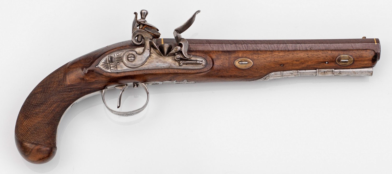A Scottish flintlock pistol. Signed Hunter.