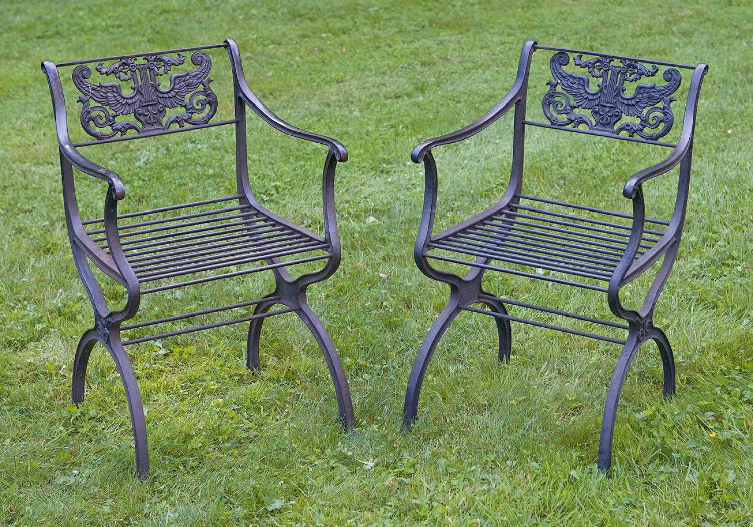 Paar Garten-Armlehnstühle nach einem Entwurf von Karl Friedrich Schinkel