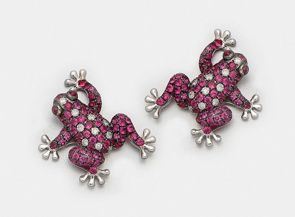 Lot 1061: Paar extravagante Frosch-Ohrringe mit Rubinen